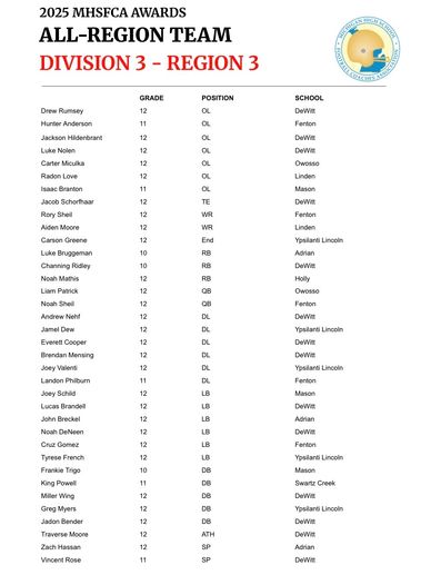 Congratulations to all players honored on the MLive Flint-area Dream Team for offense.